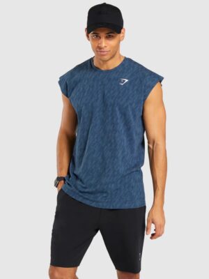 CRITICAL CUT OFF SLEEVELESS TEE – TEAL PRINT (AUTHENTIC)